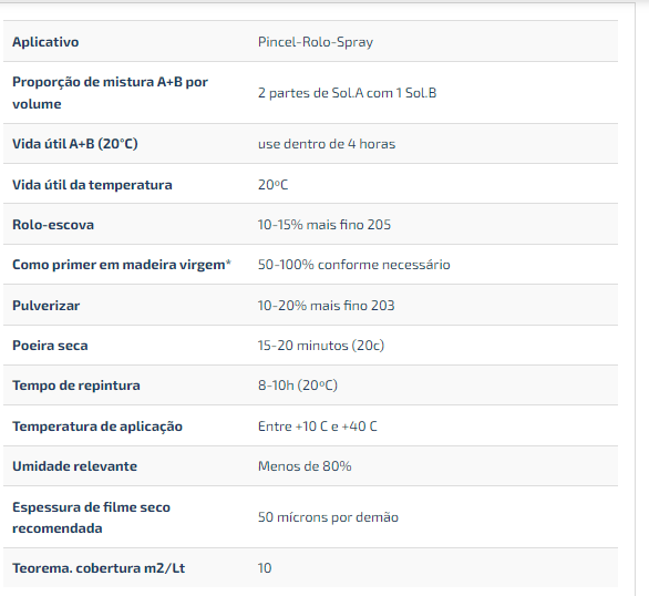 NOTA_O número de demãos recomendado para cada verniz é apenas indicativo; o número de demãos efetivamente necessárias depende principalmente da absorção da madeira. Para madeiras novas recomendamos a aplicação de pelo menos 10 demãos no total de Poliglass e verniz topcoat. Para a restauração de vernizes antigos trazidos à madeira virgem, recomenda-se a aplicação de pelo menos 6 a 8 demãos. Para trabalhos particularmente importantes contacte o nosso serviço técnico.