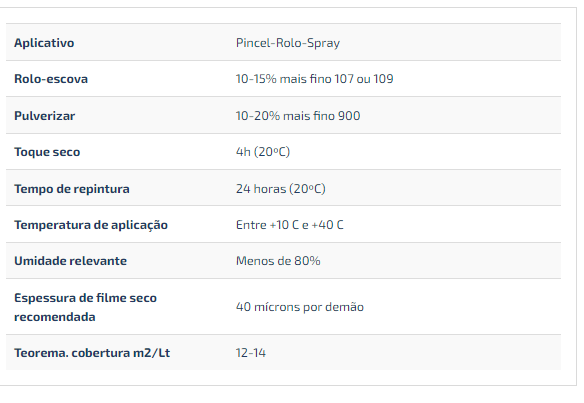 Nota: Na época de verão ou quando as temperaturas são superiores a 20°C, recomenda-se para aplicação com pincel a utilização do diluente 109 .