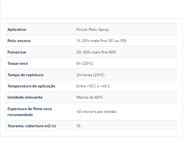Nota: Na época de verão ou quando as temperaturas são superiores a 20°C, recomenda-se para aplicação com pincel a utilização do diluente 109.